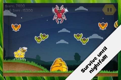 Help the paper bees defend their hive against attack! They must fight off eight different types of enemies, including mosquitoes, stink bugs and exploding beetles. The game features 30 challenging levels, spread over three different scenes.