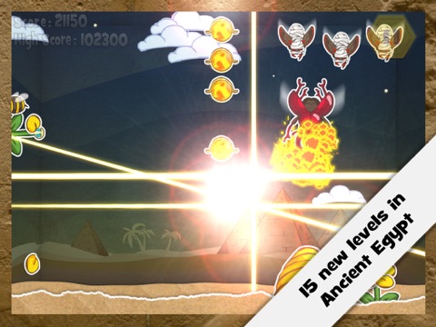 An in-app purchase is also available. It features 15 extra levels. In this add-on, the bees must defend their hive in ancient Egypt. Help the bees fight off scarabs and mummy beetles. Locusts will give you the ability to destroy your enemies using the power of tornadoes. Purchasing Egypt will also disable all ads.
