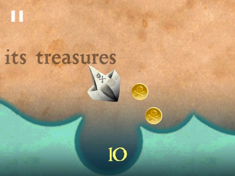 Sail the paper seas with your paper pirate ship! Find treasure and sea monsters -- but beware the ink spill chasing you! Keep your boat at the correct angle to get the fastest speeds and even jump off of waves! If you gather enough treasure during a single try, you can unlock new boats!