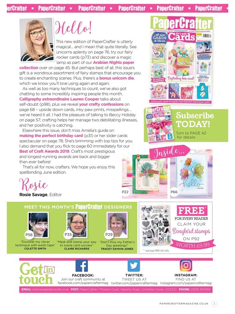 - Club PaperCrafter: five pages of fabulous letters and projects from YOU, our readers
