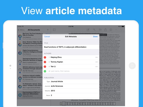 METADATA | PaperShip allows you to read and edit articles metadata. You can now add tags, update title or change authors in an easy way whatever the type of document you are reading.