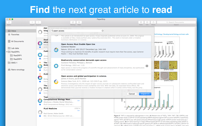 The app is looking nice as expect, but of very little integration. First of all, pdf documents alread downloaded in Mendley are shared with Papership. You have to add again any pdf you want manually. By adding a document youll notice that you have two files on computer instead of one. So, Papership is harddrive inefficient too.