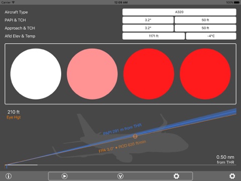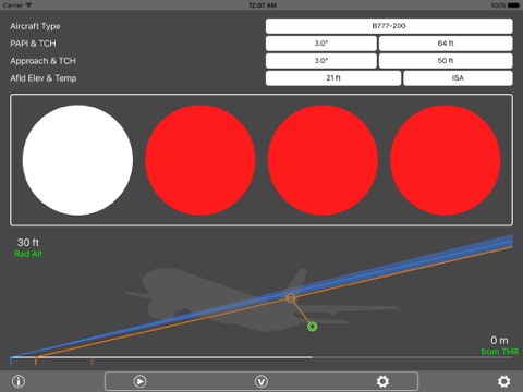 This app allows you to vary the aircraft flight path and the position of the PAPIs by way of Threshold Crossing Height and Slope Angle, and displays PAPI indications, flight deck forward views, aircraft vertical profile, gear position and touchdown distance. Hot and cold weather altimeter errors are also applied to the aircrafts approach profile, so you can see the effects of these at airports youre familiar with. The height display shows AAL, AMSL, eye height and radio altimeter (landing gear) height. The distance display can reference ILS glide slope position or distance from the threshold in nautical miles, meters or feet. You can configure the type and position of runway markings and the lighting set-up to simulate a particular runway. New in version 1.4, the effect of rounding (or errors) in altimeter settings can be demonstrated.