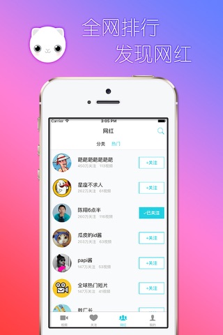 一款app,无需注册,一键关注对应网红.网红更新即时推送.不错过任何一个网红视频