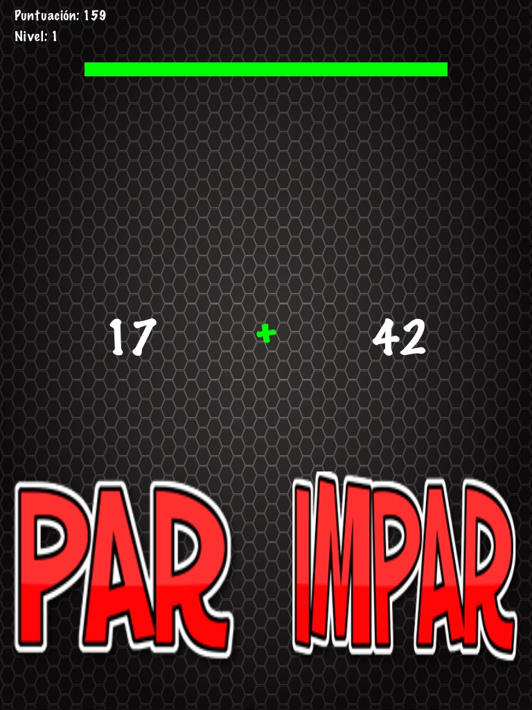 The game consists in calculate on a given time if the result of the operaiton on screen is even or odd. The faster you are the more points you can earn! Check your results against your friends to see who have the quickest brain!
