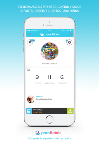 Con la nueva App de paraBebés podrás disfrutar de una selección de los mejores audios sobre las siguientes temáticas: Educación infantil, Relación de pareja, Salud infantil y Cuentos para niños. Disfruta de estos audios desde tu móvil en el coche, en casa o donde tú quieras.