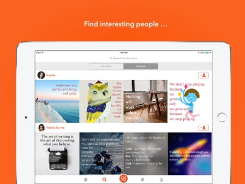With a fast, beautiful and fun way to share your thoughts visually, Parable is your Creative Photo Network . Get inspired with gorgeous thoughts from others.
