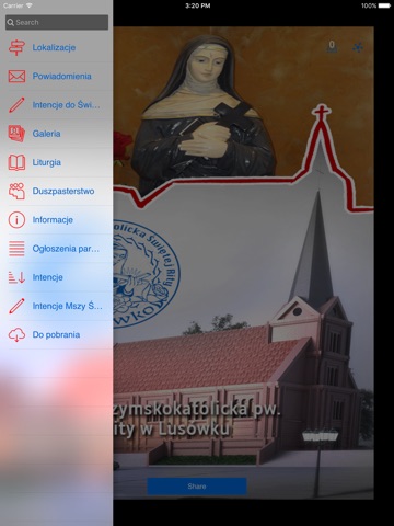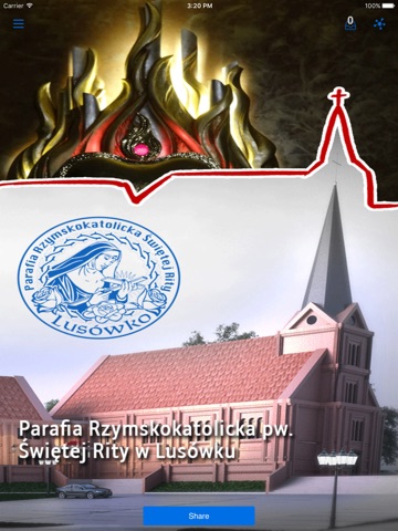 Aplikacja zawiera informacje z Parafii Rzymskokatolickiej pod wezwaniem Świętej Rity w Lusówku pod Poznaniem. Aplikacja przeznaczona jest dla parafian oraz wszystkich osób, które zainteresowane są aktualnymi wydarzeniami w parafii. Moduł powiadomień jest definiowany przez użytkownika co pozwala na dostosowanie tematyki wiadomości do indywidualnych preferencji.