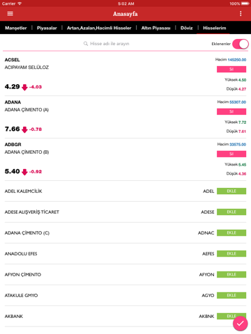 Altın piyasası, dövizler ve kendi hisselerinizi takip edebileceğiniz özel bir bölüm.