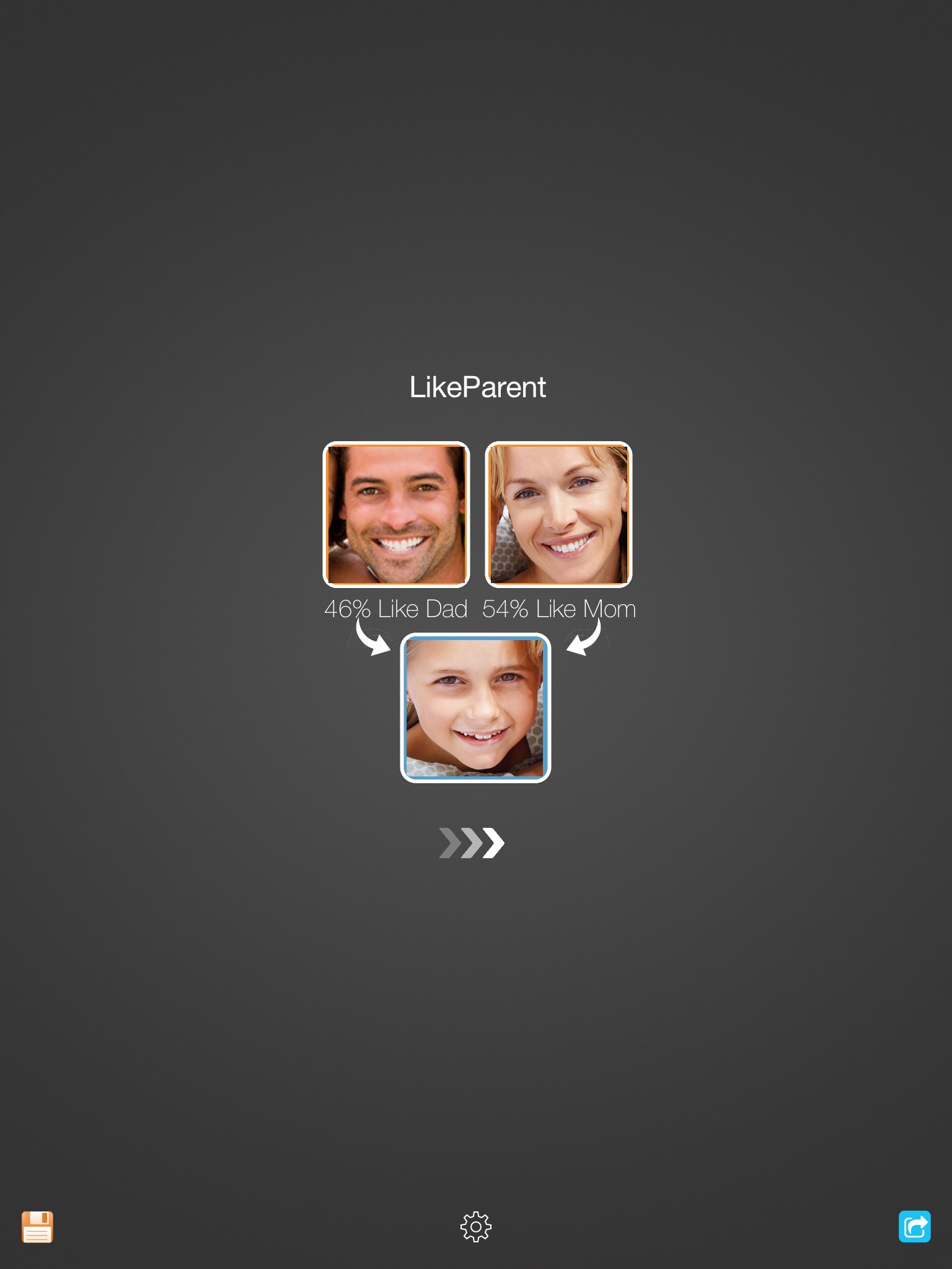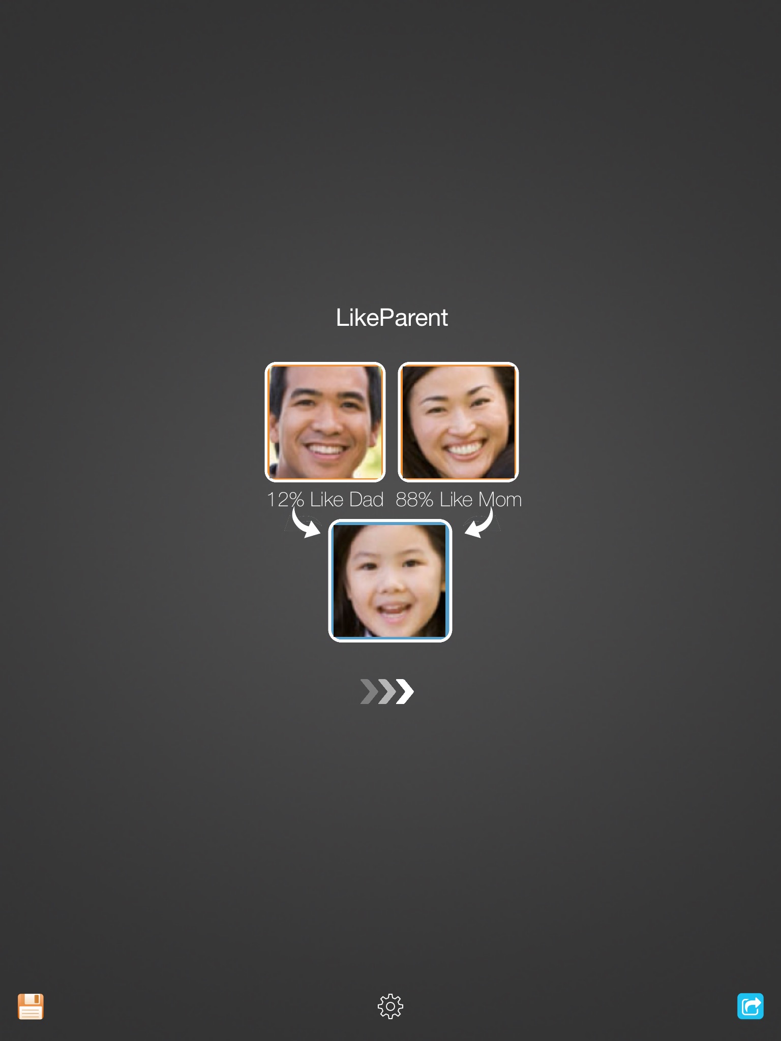 Did you ever wonder who are the most resemble to you, mom or dad? Try to use this app. It can analyse your face and show who look like you the most. Its fun for family.