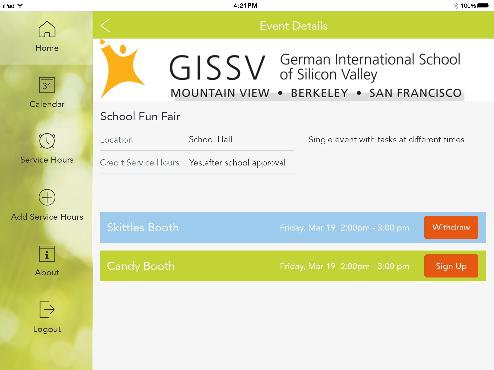 Does your school have an app, branded to the school, that keeps parents informed about volunteer opportunities? Parent Booker is an iPhone, iPad and web app that informs parents about volunteer opportunities, lets them sign up and tracks their hours against targets.
