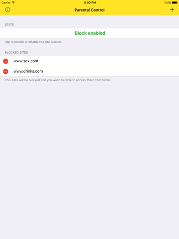 Parental Control for Safari allows you to add websites to a blacklist that will be blocked from browsing on Safari.