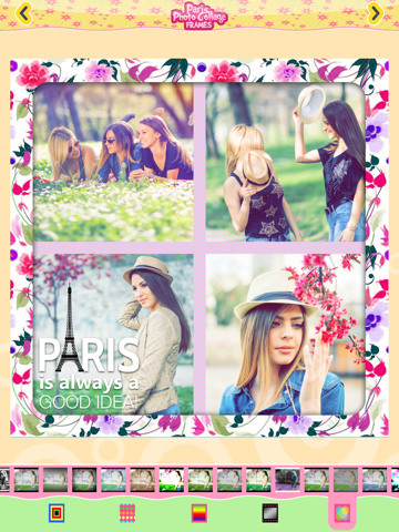 If you love taking selfies and youre taking one snapshot after another, instantly turning into a professional photographer when youre with your BFFs, download this free photo editor and enjoy the photo fun it offers! With these adorable Paris collage frames youll give insta beauty to your fotos, and make them all look bright and happy!