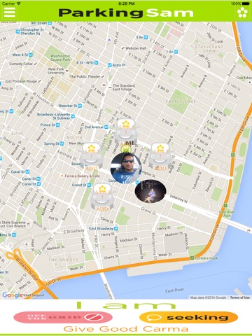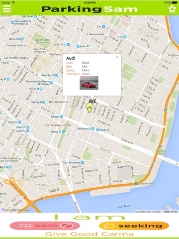 Using Geo-Location on the users smart device, Parking Sam allows users to find Sams in their immediate area and provides an easy to use interface to help match Seekers and Givers for a successful exchange.