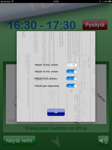 Parking Disc (Parkkikiekko) is an application for alerting when your parking time is ending. It also shows the route back to your car.