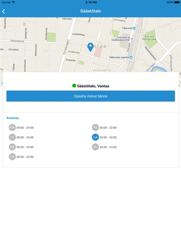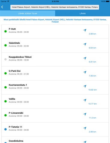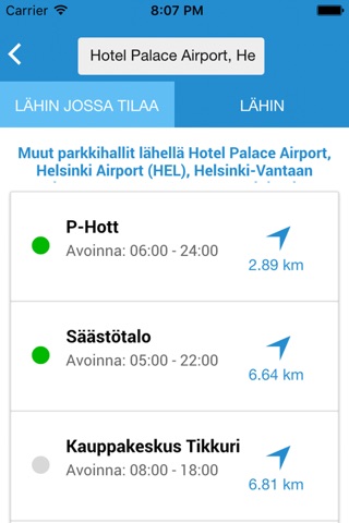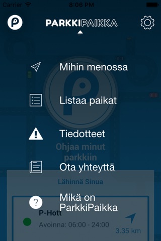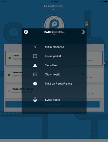 ParkkiPaikka sovelluksella voit etsiä kätevästi Sinua lähimmän, avoinna olevan parkkihallin, jossa on tilaa pysäköintiin. Sovellus ohjaa Sinut myös perille, yhdellä napin painalluksella.