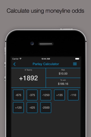 Ever wonder what an 8 leg parlay of -550 teams pays? Its a snap using the Add Multiple feature. Simply tap Add Multiple, select the number of teams to add, then set the odds.