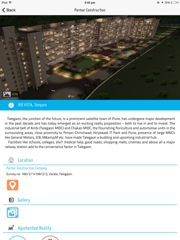 -Click on Augmented Reality options and put camera on building,club house,garden,1bhk and 2bhk floor plan images in brochure, if you not have brochure click on Custome AR and put camera on any images to view 3d building