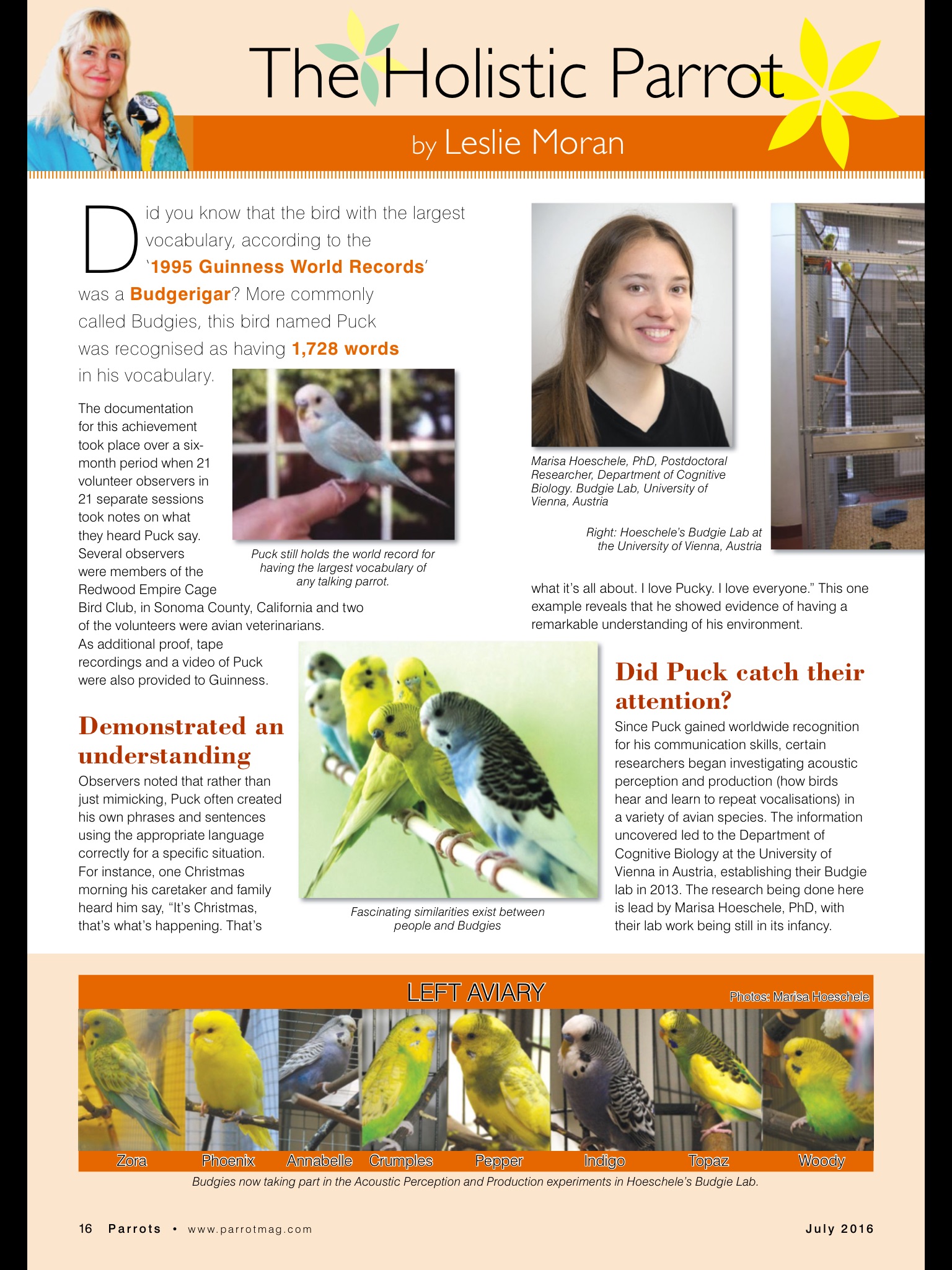 Parrots magazine is exclusively about parrots and parakeets covering a wide range of topics including how they can become valued companions, behavioural issues, breeding, veterinary and healthcare, conservation, general husbandry and many other interesting aspects about these unique birds. Apart from information being interesting and appealing to readers, the magazine always encourages responsibility and education in order for owners to provide the best care for their birds. Information on shows, conventions and many other visitor attractions. Advertisements from a wide range of suppliers of feeds, accessories, ecotours, vet listing, ‘Lost and Found’ register, and other parrot related items.