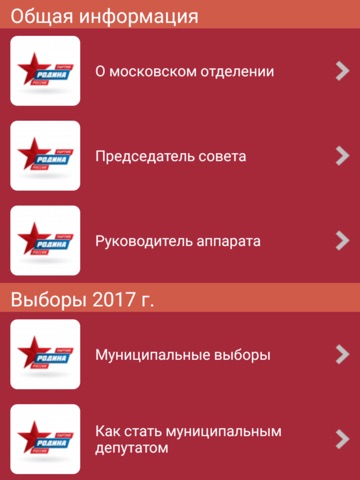 Приложение московского регионального отделения Партии Родина создано для удобства членов партии и её сторонников.