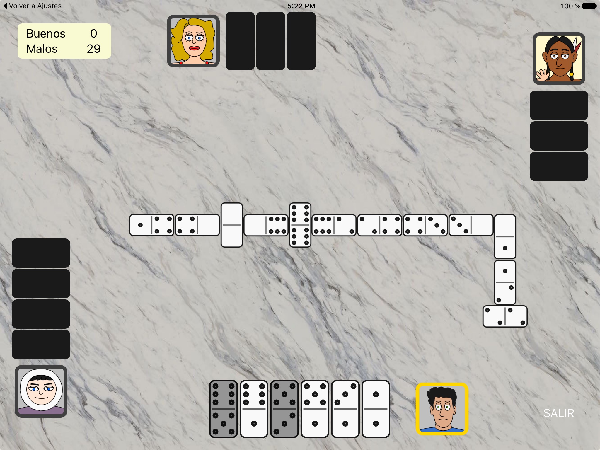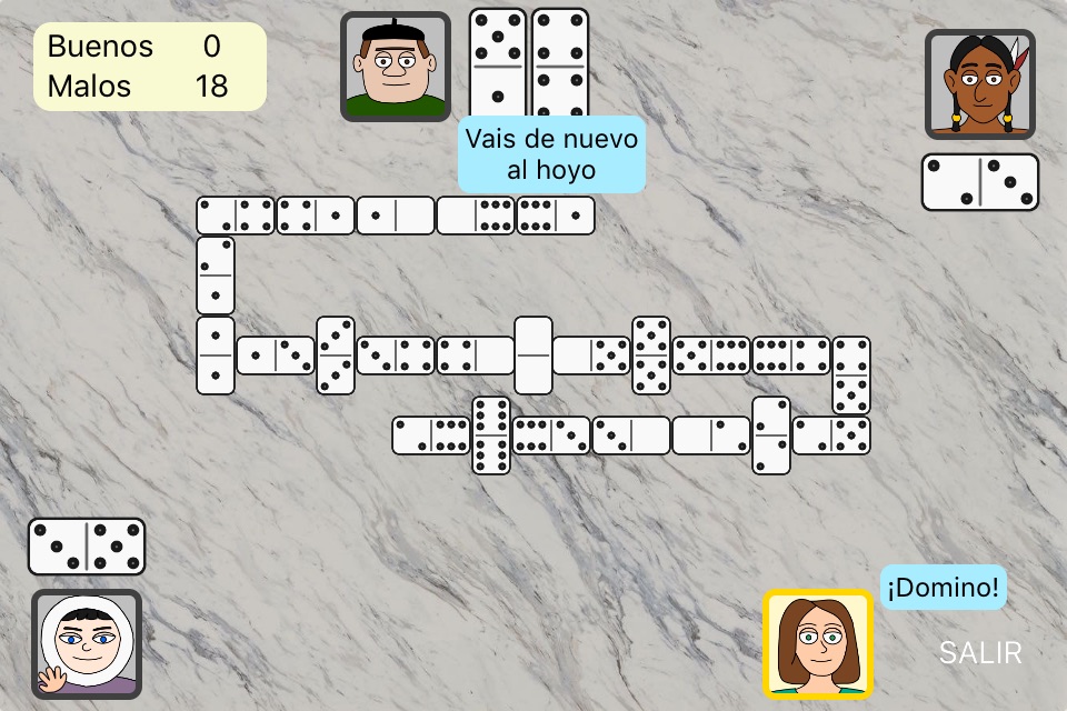 ”Partnership Dominoes" is a conversion of the dominoes game described above. At this moment, the individual game is only available, although you can choose your partner and rivals among the available bots. To do this, push the avatar you want to change in the configuration screen.