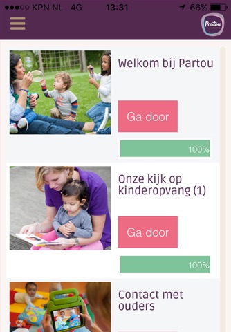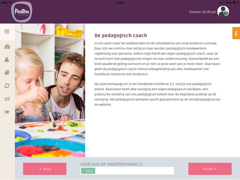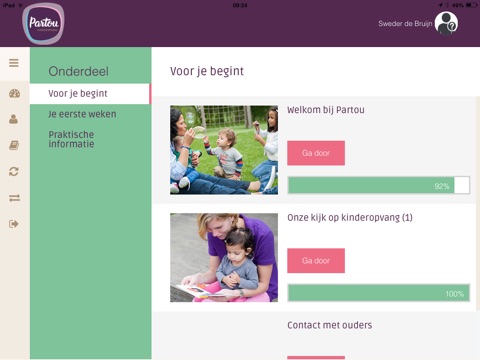 We vinden het belangrijk dat nieuwe medewerkers zich welkom voelen en goed voorbereid aan hun eerste dag bij Partou kunnen beginnen. Met het online introductieprogramma willen we nieuwe medewerkers enthousiasmeren en op een eenduidige manier inwerken. Met beelden, teksten, video’s, vragen en oefeningen, delen we onze pedagogische visie, staan we stil bij onze merkwaarden en behandelen we spelenderwijs de belangrijkste protocollen. Het programma is beschikbaar op pc, een tablet of in afgeslankte vorm op een smartphone