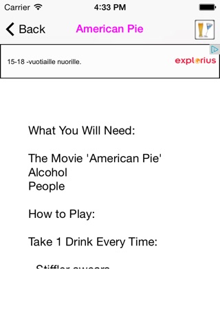 Personally I would live to see a way to favorite some games. Other than that this is an awesome selection of drinking games guaranteed to screw up a persons liver quicker than you cam blink.