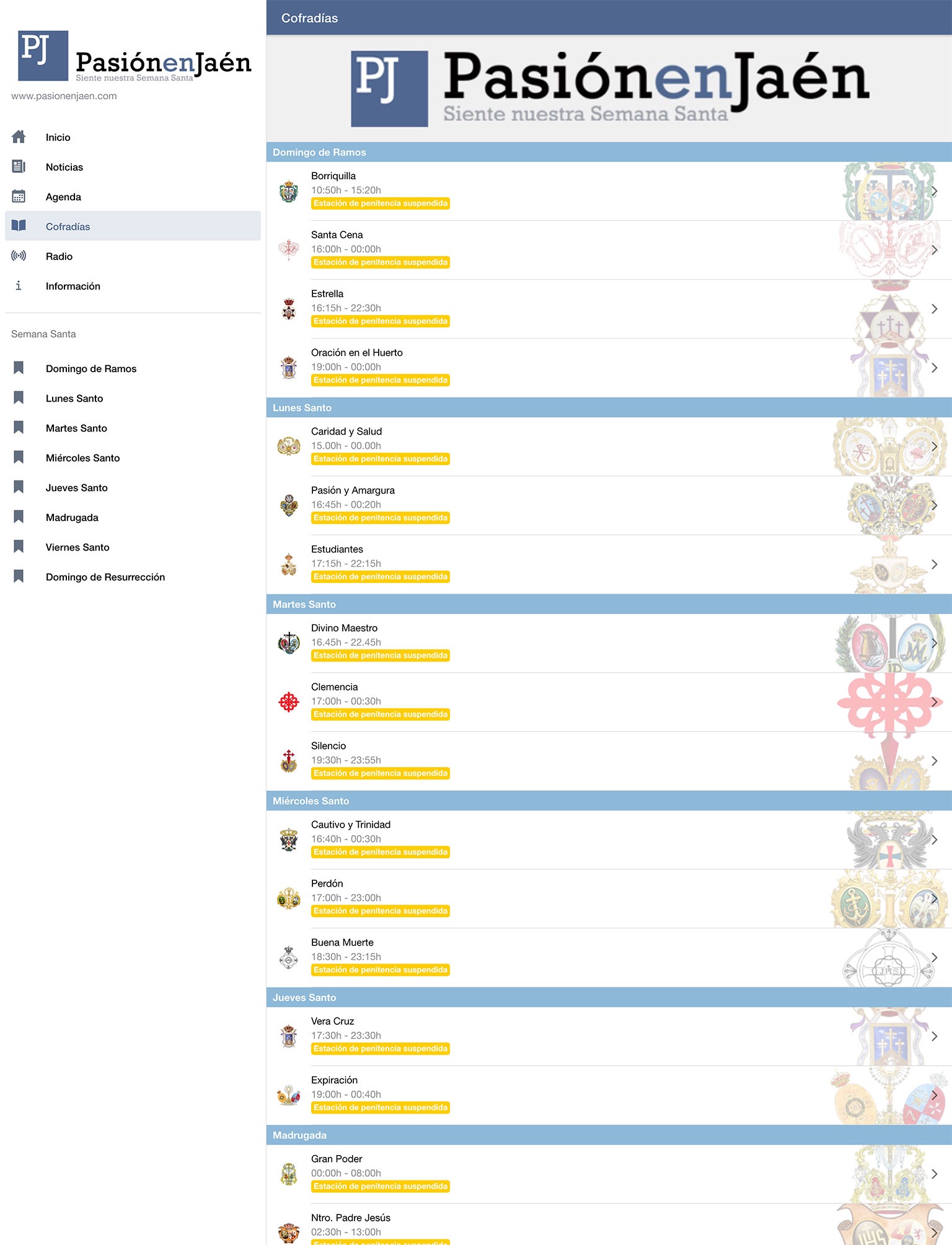 Notificaciones de suspensión definitiva de cofradías en tiempo real.