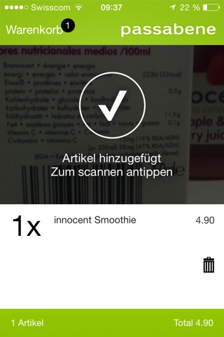 Scanning barcodes of products worked except for few products. At the classier the qr-code could not be scanned! 5 minutes embarrassed trying, no support at all by the employees, than I had to unload the whole cart and pay without passabene - better save your time and dont use this app!