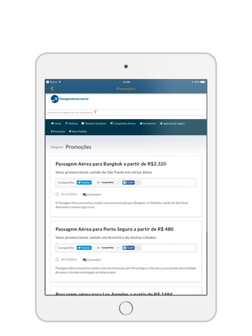 Encontre gratuitamente tudo o que precise para sua viagem no aplicativo Passagem Aérea! Pesquise, compare voos e ainda poder comprar passagens aéreas tudo pelo celular! Você ainda tem acesso exclusivo às melhores promoções aéreas, dicas de roteiros, compare preços, ofertas de viagens, passagens baratas e muito mais!