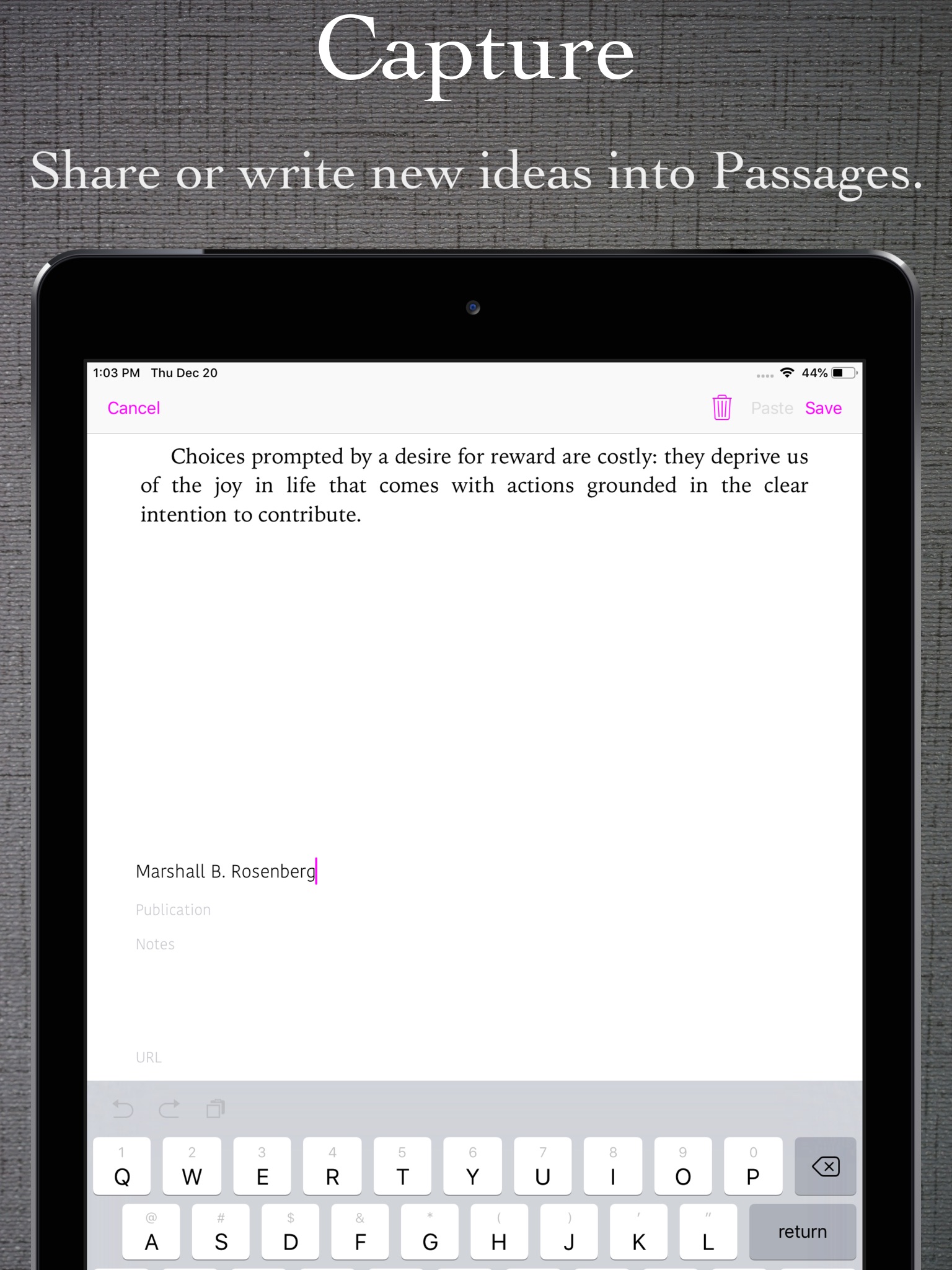 - A share extension so you can easily capture quotes from reading apps and the browser