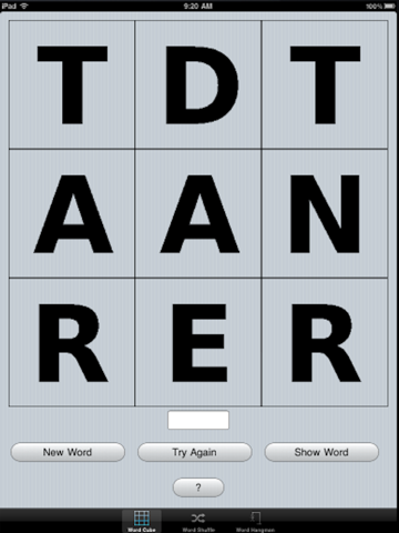 Word Shuffle challenges you to re-shuffle the words to make an actual word.