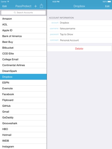 • Stays on Device: Unlike other password manager apps, PassProtect keeps all your passwords on your device instead of a remote server, so you don’t have to worry about hackers remotely stealing your passwords.