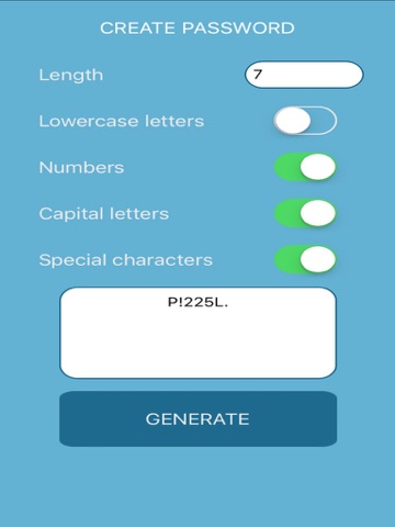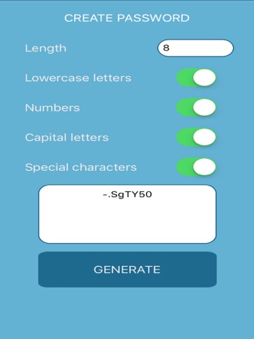 - Select the options for your password (uppercase letters, lowercase letters, numbers ...).