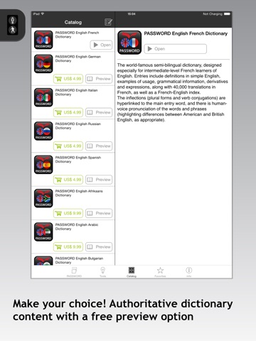 The PASSWORD Semi-Bilingual English Dictionary Apps offer the catalog of English dictionaries for more than 38 major languages: