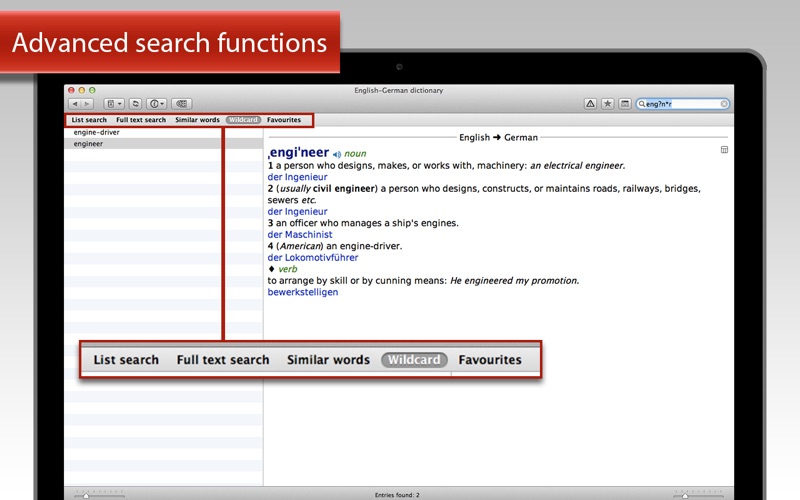 • Advanced search functions in English or your own language, including full text, wildcard, fuzzy search, as well as of various grammatical word forms