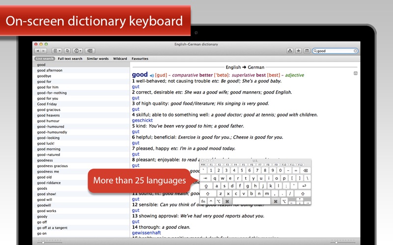 • On-screen dictionary keyboard for more than 25 languages