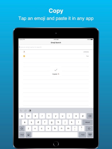 Paste is an emoji search app to quickly search for and copy emoji and paste them anywhere else. Now it is easier than ever to find the perfect emoji. No more swiping through long and large grids of emoji for minutes just to find the right one!