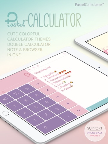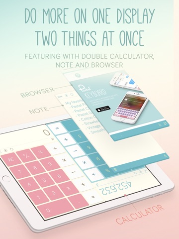 Pastel Calculator™ Do more one things on one display with Double Calculator or separate another half as Note and Browser.