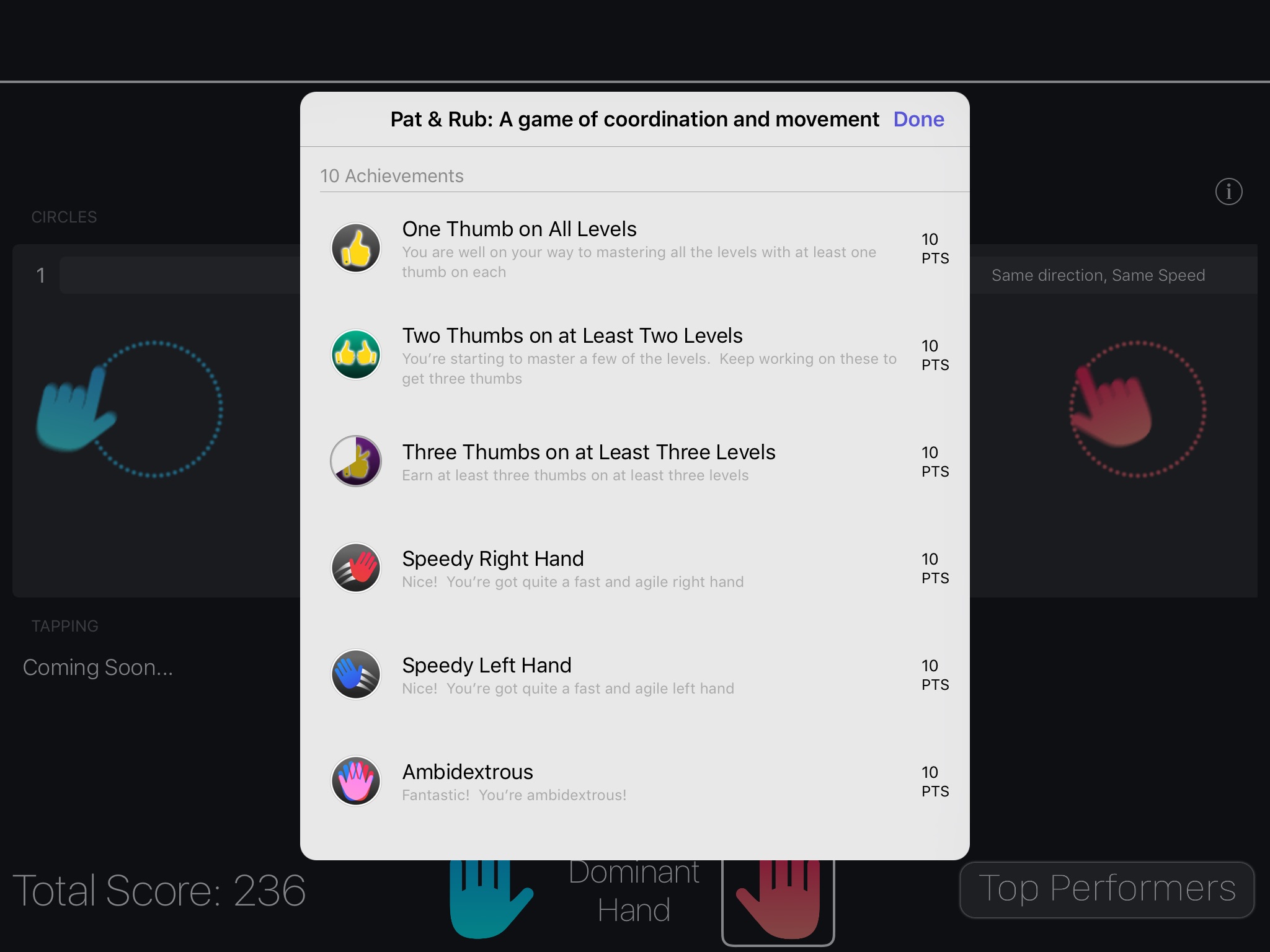 The idea for this app came from research related to bimanual (i.e., two handed) motions. The REEDlab at the University of South Florida has been examining how bimanual motions can be used to train people to become more coordinated and for stroke rehabilitation. Bimanual motions are also vital for brain development, which is one of the reasons why it is important for babies to crawl – the alternating hand motions teach the two sides of the brain to work together. Similarly, in stroke rehabilitation, these motions help retrain the brain by using the healthy side motions to guide the impaired side motions. So, using this app can be both fun and beneficial to your coordination.