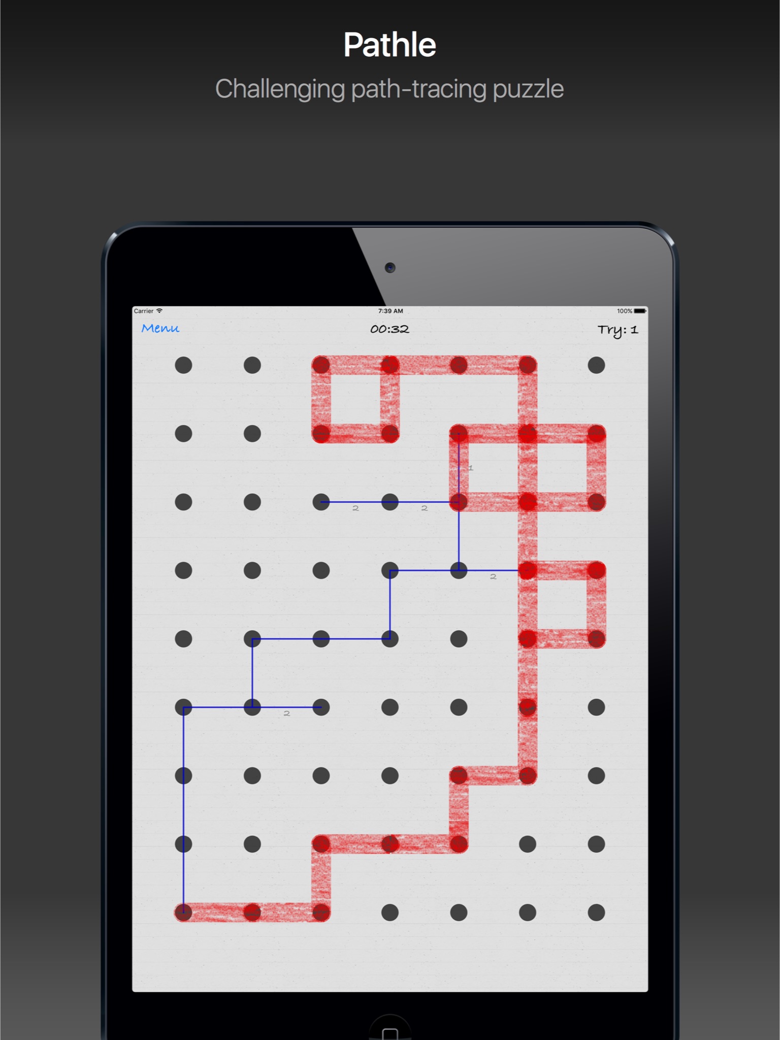The goal is to trace the predefined path with your finger, using a single stroke, in as little time as possible. Once you start drawing, you must never lift the finger from the screen or the level will have to be restarted. Although the rules might sound simple, solving all levels will be challenging. :)