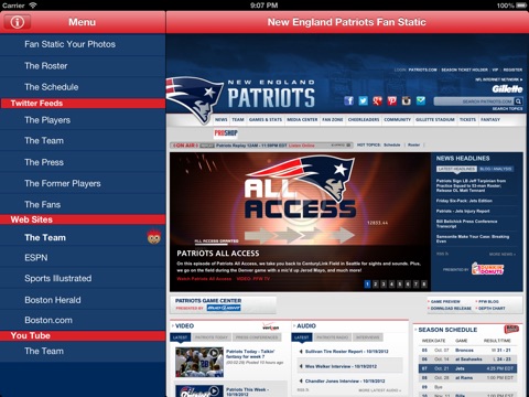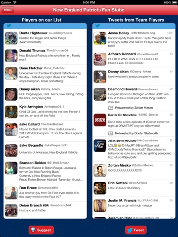 New England Patriots Fan-Static keeps you up to date and allows you to get involved and show off your true fan spirit! Follow Twitter Feeds from the Current Players, Management, Local Beat Writers, Former Players and FANS like you! Youll never miss a news items, fact or tweet with Fan Static.