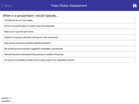 As part of the app experience you will complete 3 instruments: learning styles, personality and team roles. You will then receive 3 reports based upon your answers. Each report will highlight your unique contributions, provide you with tips relating to practices that will aid you to become more effective in that area and provide pointers of where you may need to develop further.