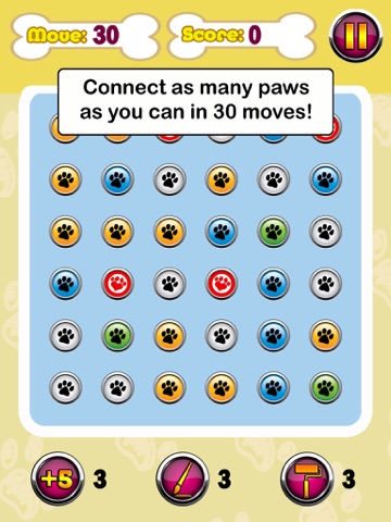 2. 30-Move Mode - Connect as many paws as you can in 30 moves! Tap the +5 button in the bottom corner for an extra five moves.