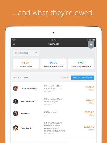 Track and pay your company’s 1099 contractors with Payable. Payable gives you real-time insight across your entire organization into what work has been done and what’s owed. Stop wasting your time chasing down emails, invoices, and spreadsheets!