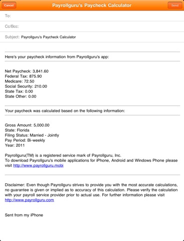 Not sure why all the great reviews. It doesnt tell you amount per paycheck-at least it didnt for me getting paid semi-monthly. And the calculated amount was WAY off from what Im actually getting each paycheck. Ive been using payckeckcity.com for a while and it works pretty good.