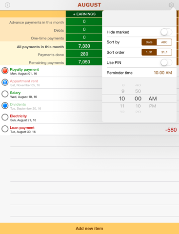 Нет возможности настроить регулярные платежей по дням недели, только по датам. Нет при вязки к календарю - больше похоже на список дел. Нет возможности протестировать приложение перед покупкой.