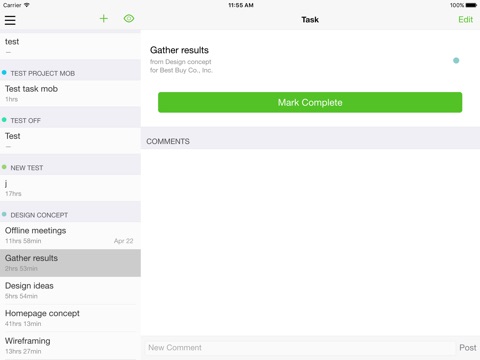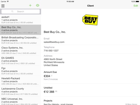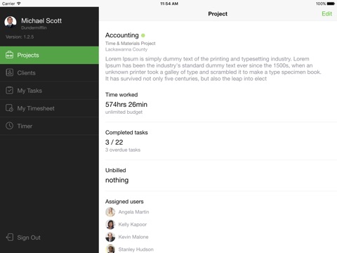 - Access and edit existing clients, projects, tasks lists and tasks or add new ones