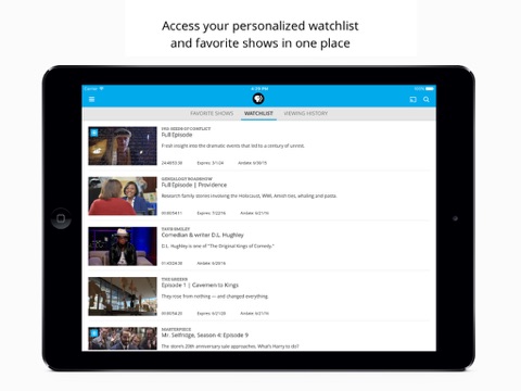- Binge watch new TV series and your favorite PBS programs, like Finding Your Roots