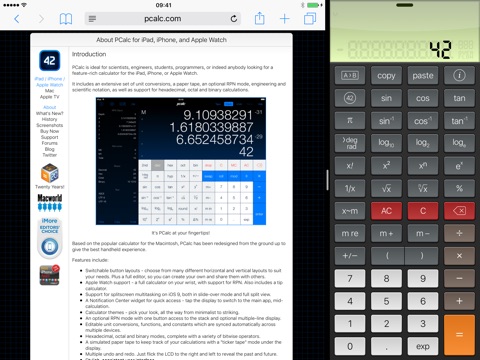 Cette calculatrice na absolument rien à voir avec celle livrée de base! Un mode RPN (pas obligatoire pour ceux qui ne connaissent pas), une mémoire, un clavier réactif, des fonctions mathématiques, des conversions, un look denfer... La version complète sera mon prochain achat sur lAppStore, même si la version light correspond à quasiment tous mes besoins! Il faut aider les développeurs brillants!!!